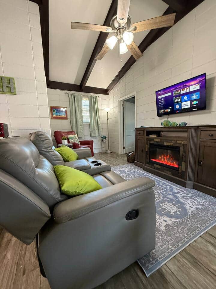 Clean, Cozy Beach Bungalow, grassy area for pets Linens & towels provided Well stocked kitchen 2 Comfy Queen BRs Beach Chairs Cozy fireplace to relax Just steps from Atlantic Ocean Easy access to pristine sands of Crescent Beach Enjoy beach breeze under 100 yr old live oak trees Golf cart is extra fee Large walk in shower with rainfall head Laundry in your unit Ice cream shop quick walk away Comfy & Quiet Mini split A/C Smart TVs in LR & all BRs Relax on the front porch and enjoy the cool breezes under the shade of 100 year old protected live oak trees. 2 queen bedrooms and 1 full bath with walk in shower. Large smart TVs with full channel line up on Youtube Tv 2 min walk to beautiful beaches or Ice cream shop & restaurants 5 min drive to Barefoot Landing ,Tanger Outlet & Bass Pro Para Sail & Banana Boat rides within short walk 2 car off street parking Very short walk to ice cream shop, restaurants and the beach!!! Quiet, family friendly, pet friendly, local hot spots, beach, Molly Darcy's, ice cream parlor. Uber, Lyft, walking, personal vehicle, bikes No Smoking or vaping inside, $250 fee applies. Registered guest only, no parties!! $250 fine applies 2 pet maximum, $159 pet fee per stay. Maximum weight 40 lbs Pet must be kenneled when owner is out and on leash when outside as required by N Myrtle Beach. Minimum age to book is 25, only exception is 3 previous positive reviews on Vrbo or Airbnb. We reserve the right to verify age by requesting ID. Quiet hours must be observed between 11pm and 8am, please be mindful of noise since there is another rental unit on the same property.